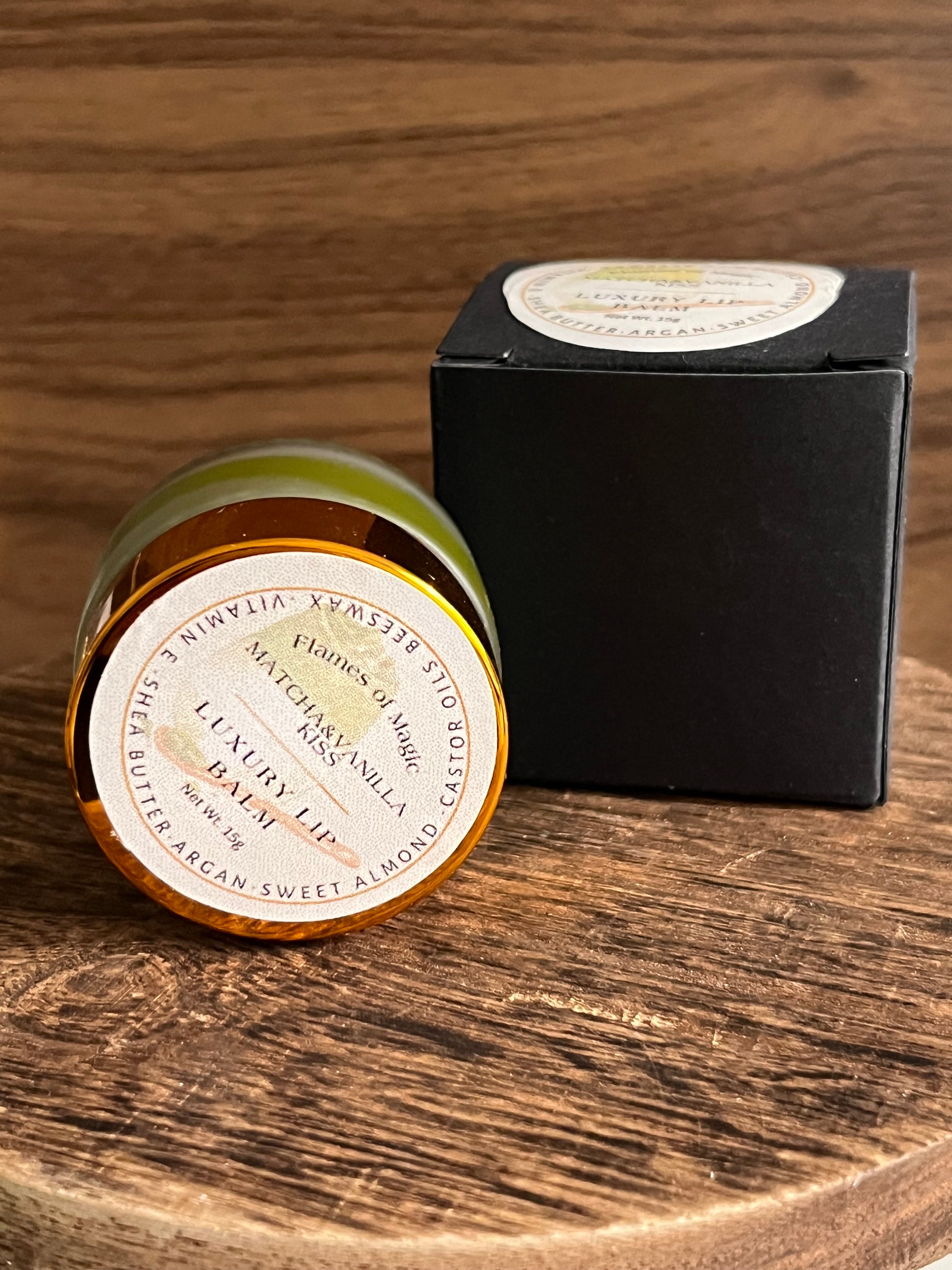 Treat your lips to a luxurious balm crafted with nature’s most comforting ingredients. Matcha & Vanilla Kiss is a rich, handmade formula infused with antioxidant matcha, soothing vanilla, and deeply conditioning butters, oils, and beeswax.